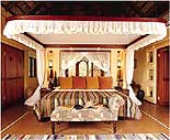 Die fünfzehn strohgedeckten Luxuspavillions sind aufgeteilt in einen großen Wohn- und Schlafraum mit Klimaanlage, ein großes Badezimmer und einen kleinen uneinsehbaren Garten.